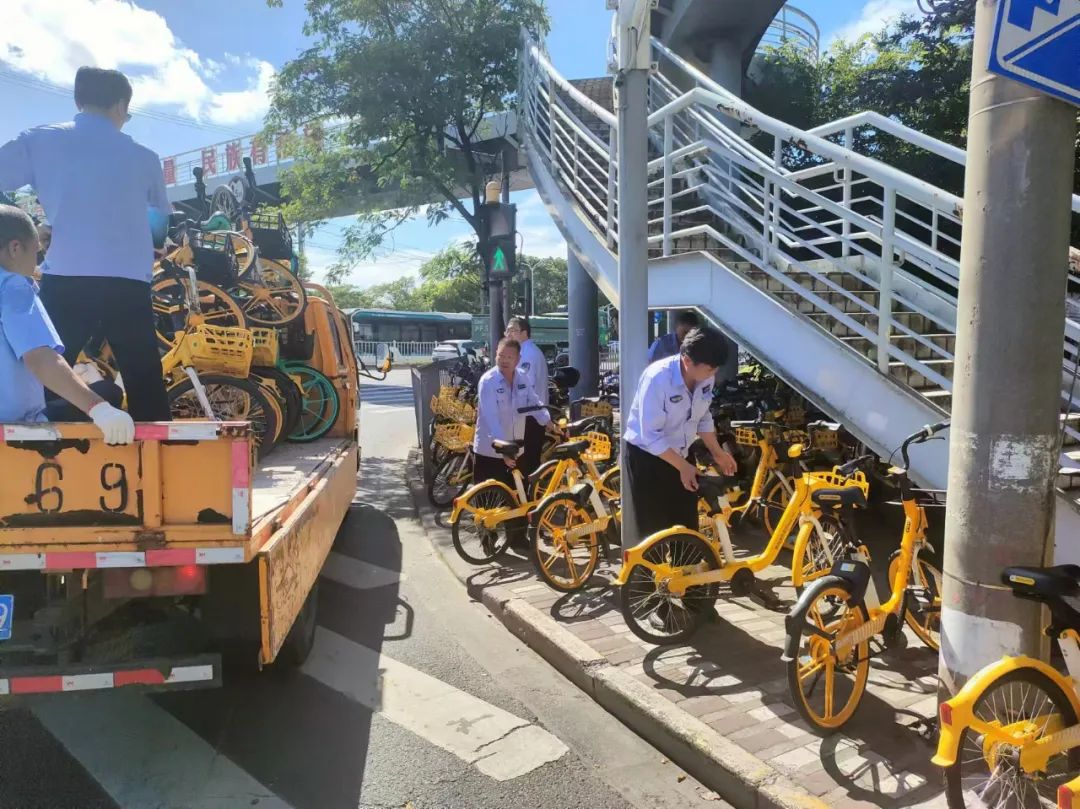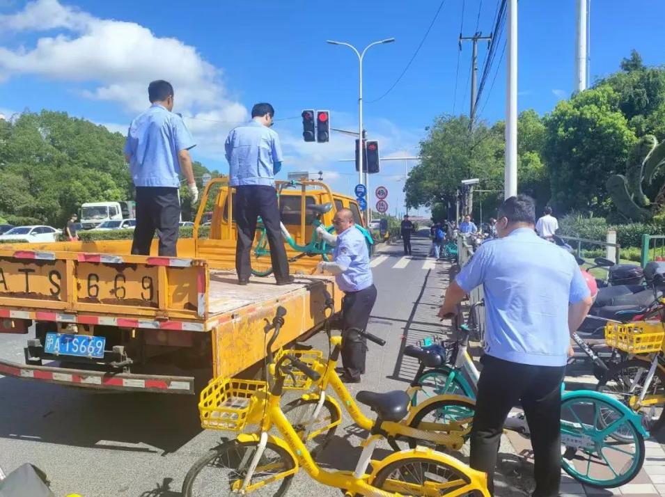 自行车共享作为一种绿色便捷的交通工具,满足了公众对“最后一公里”的出行需求。但由于昼夜“潮水聚集”效应、部分市民乱停乱放、运营企业投入过多等问题,大量车辆沉积占用道路,影响城市交通秩序和市容。近日,宝山区月浦镇建管中心整治了辖区内自行车共享乱停乱放现象,旨在进一步创建全国文明城市,为居民提供干净整洁的城市面貌。