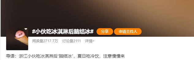 【晨读】小伙子吃冰淇淋“脑结冰”!夏天吃冰不要任性