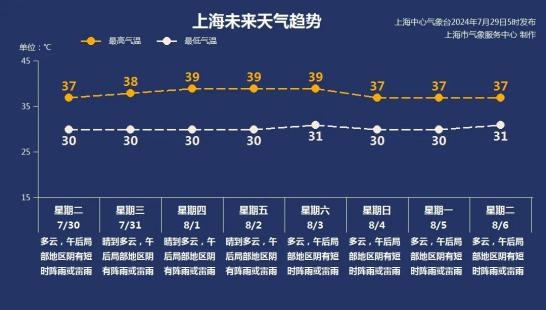七月三十日:晴到多云,下午部分地区有短时阵雨或雷雨,29~37℃