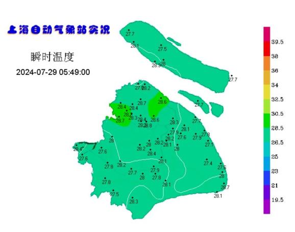 今日(7月29日)一大早,在东南风的吹拂下,体验还算舒适,白天晴热升级,晴到多云,最高气温36~37℃,南到东南风4~5级,相对湿度90%~50%。