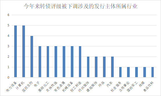 近年来,许多评级下调的可转换债券分布在房地产链中。但从今年下调的可转换债券来看,电气设备、计算机、医药生物、电子、基础化工、农林牧渔等领域也有不少可转换债券被下调评级,主要原因是业绩不佳。