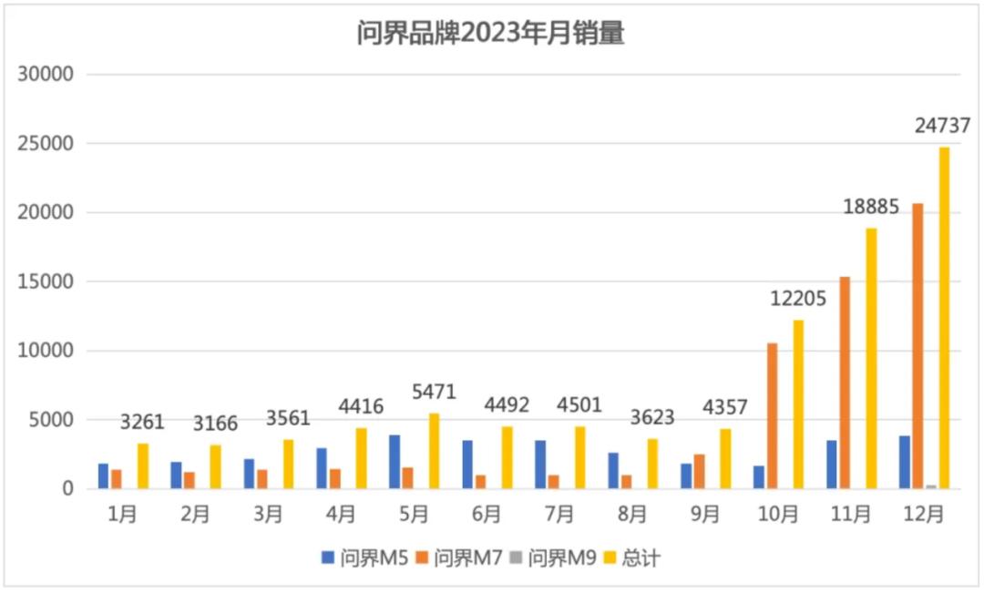 到了2023年,虽然华为的智能汽车业务在上半年或半年内生活得并不好,但是同年九月,凭借M7上市,华为又一次“改命”,月销迅速回归五位数。。