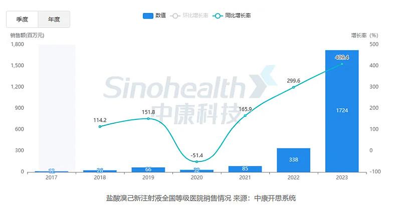 根据石四药集团的数据,2022年国内盐酸溴己新注射剂规模仅为3.3亿左右。