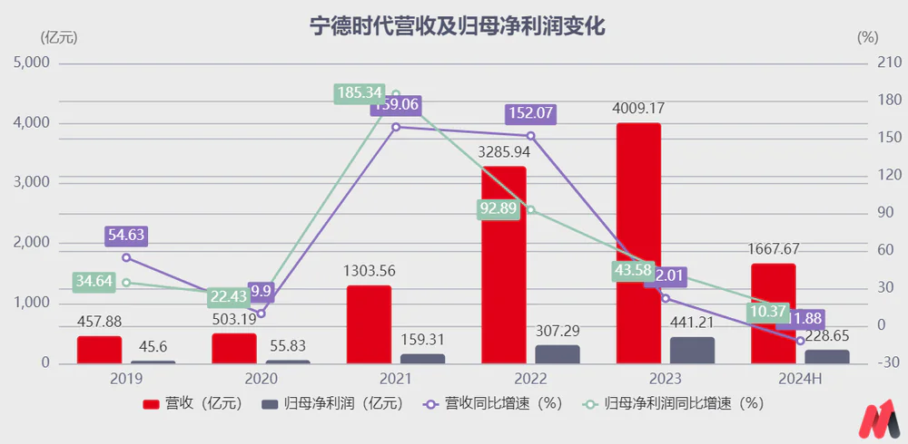 就成绩单而言,宁德时代可谓“增利不创收”。
