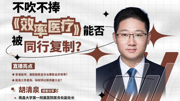 7月10日,我们邀请了南昌大学第一附属医院医务处副处长胡清泉主任,参观了“阅读时间”直播间,并围绕《效率医疗》进行了精彩分享。以下是本次直播的精彩干货整理。