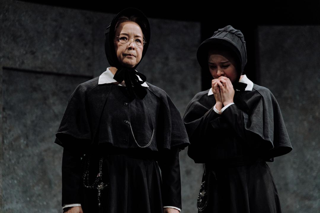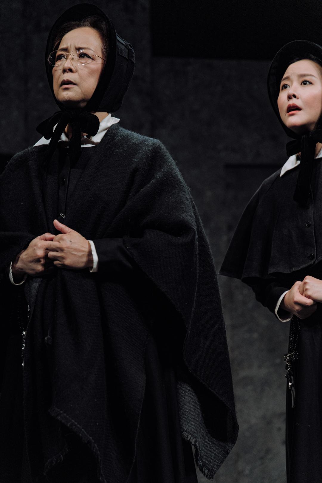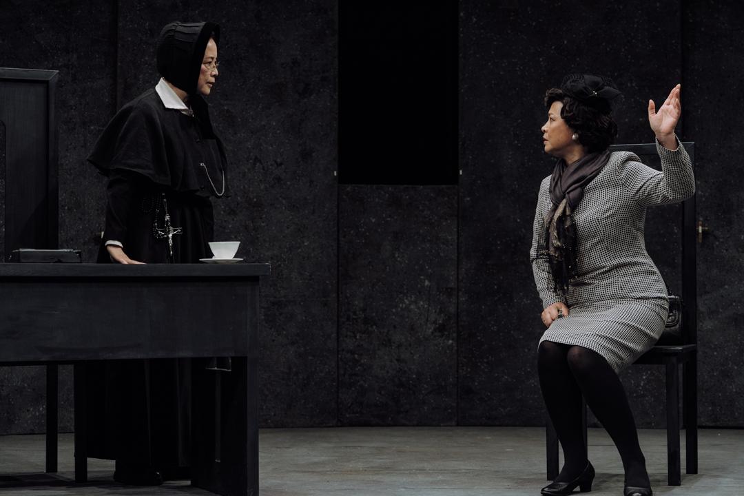 剧中,阿洛西斯修女与弗林神父竞争,穆勒太太作为证人参与其中。只有小修女不知道真假,像观众一样摇摆不定。作家尚利把他和每个人都描述成莎士比亚戏剧中的无知群众。