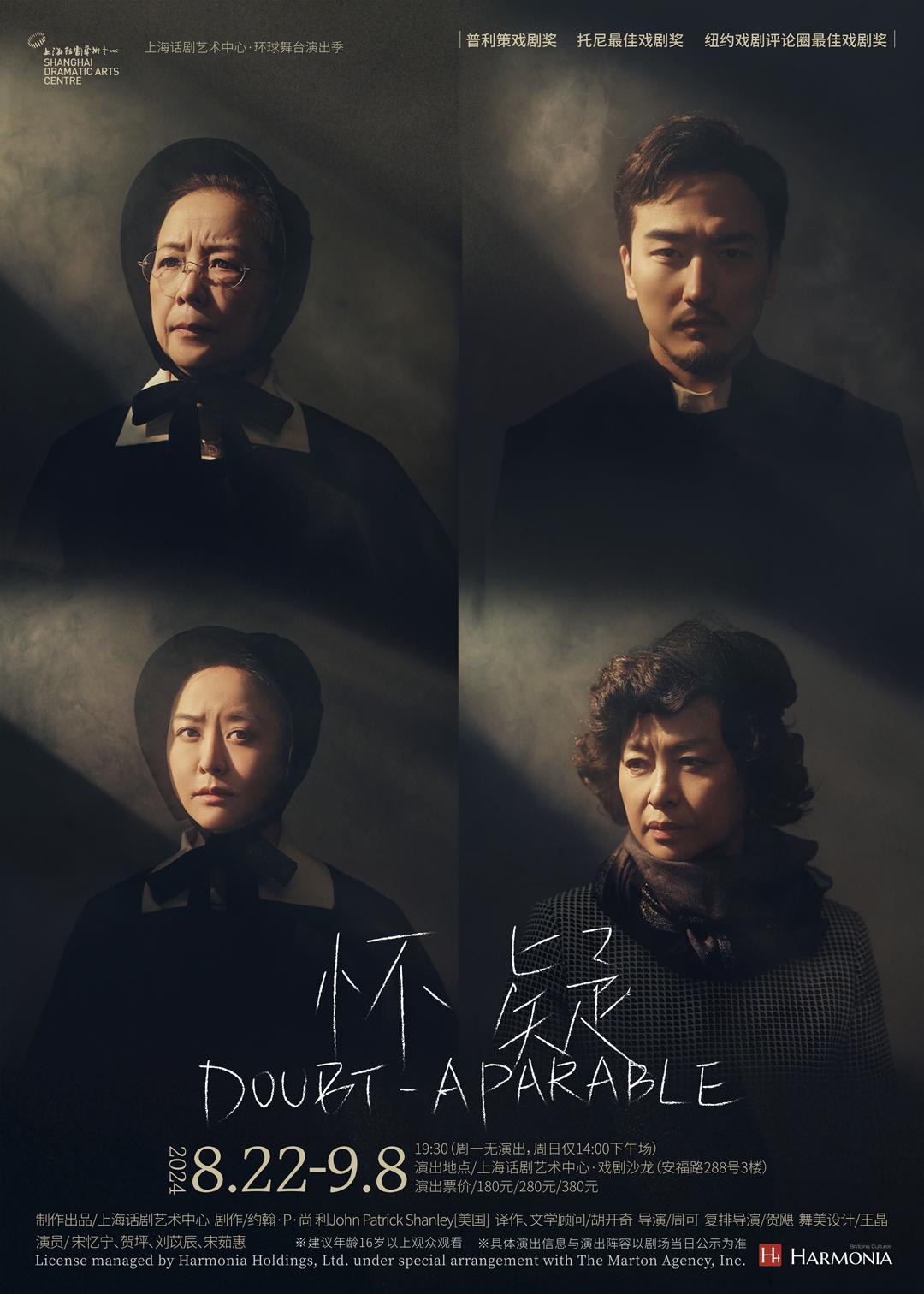 2024年8月22日至9月8日,《怀疑》将在上海戏剧艺术中心戏剧沙龙再次上演。主演宋忆宁、贺坪、刘薏辰、宋茹惠的角色性格截然不同。无论是“怀疑”还是“信任”,他们都坚定不移地表达了自己不同的立场。一场激烈的辩论将在导演贺飓的导演下呈现给观众。