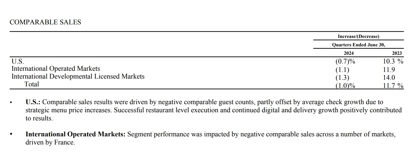 其中,美国门店的销售额比过去16个季度下降了0.7%;由于法国等“多个市场”的减弱,国际运营市场业务减少了1.1%。;国际发展许可证市场在之前的财政季节已经出现下滑,进一步下滑了1.3%。中东战争的影响仍在继续,公司在其他市场的运营也缺乏改善。