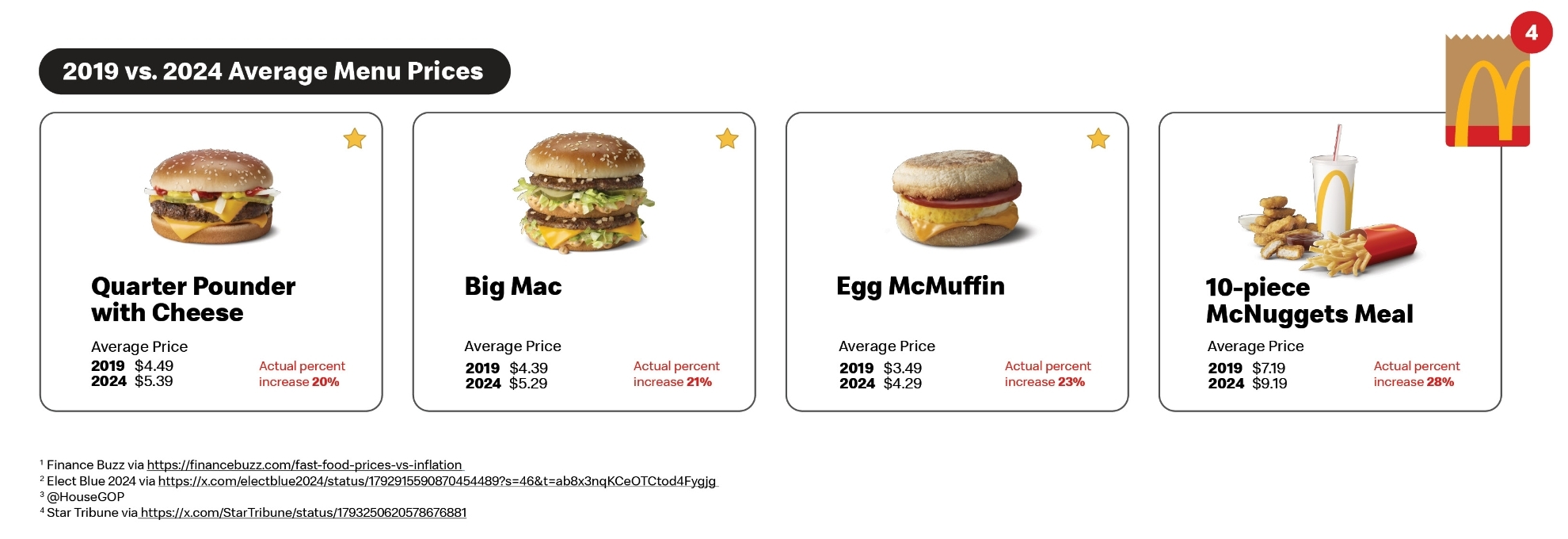 Erlinger表示,从2019年开始,在美国,巨无霸汉堡的平均价格上涨只有21%。。这一数字远低于同期员工工资、原材料和食品包装价格上涨的近40%。