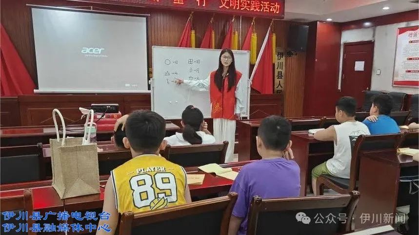 据了解,伊川县新时代文明实践中心在暑假期间招募了一批具有文艺、音乐、字画等特长的返乡大学生,为未成年人提供绘画、音乐、舞蹈、书法等文明实践活动,提供“爱心托管”服务,帮助家长解决学生假期“护理困难”、“不感兴趣”等问题。