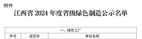配件:2024年江西省省级绿色制造公示名单