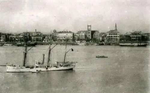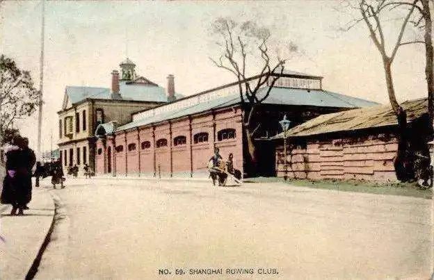 这张明信片显示了上海划船协会的完整视图。从左到右,是健身房、船屋、俱乐部和游泳池。