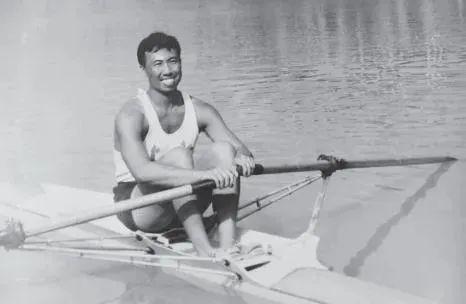 程骏迪(左二)带领中国赛艇队参加了1984年洛杉矶奥运会,取得了突破性的“1”分。