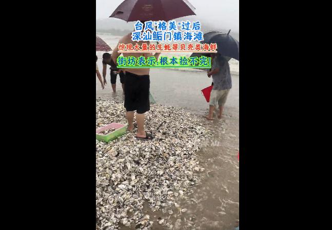 据报道,7月27日,受台风“格美”影响,深圳市深汕特别合作区长门沙滩出现了一个神奇的场景——“牡蛎从天而降”。大量牡蛎等贝类海鲜突然出现,周边邻居纷纷前往“赶海”,惊呼“根本拿不到!”