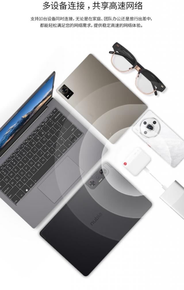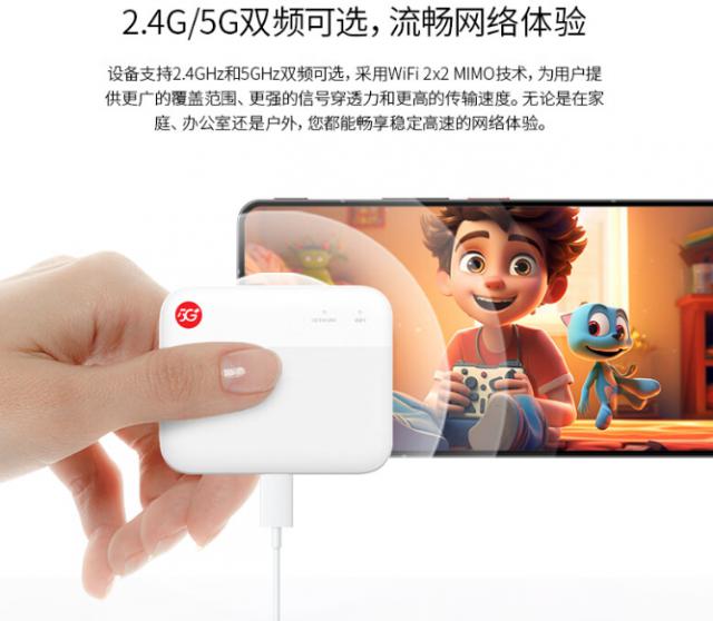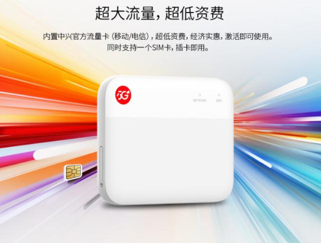 设备支持 2.4G / 5G 双频可选,选用 WiFi 2 × 2 MIMO 技术,中兴官方流量卡(移动)内置 / 同时支持电信) SIM 卡片,插卡即用。