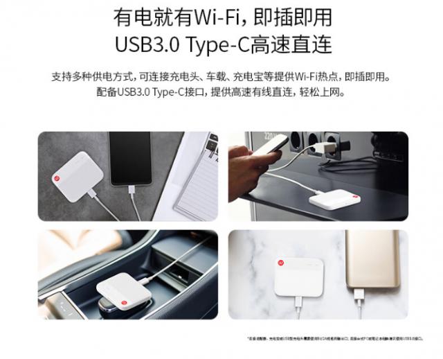 中兴 F50 5G 随身 WiFi 存储版最多支持 10 台设备连接,可以连接充电头、车载、充电宝等供电,机身配置 USB 3.0 Type-C 接口,支持有线直接连接。