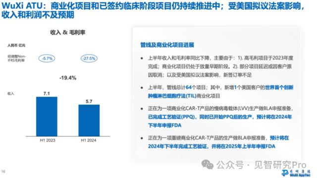 影响最严重的是ATU部门(主要包括细胞和基因治疗),也是公司演示材料中表明收入利润不如预期的部分。由于其特殊的产品要求,客户最担心,新产品最有限。目前,公司将尽最大努力完成在手订单。