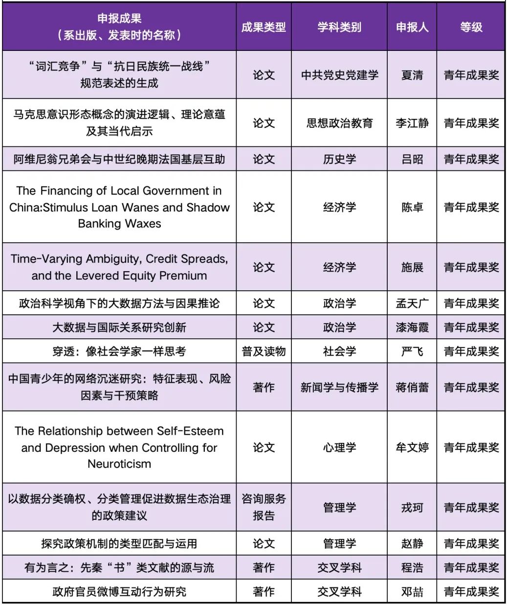 最近,教育部公布了第九届高校科研优秀成果奖(人文社会科学)获奖名单。