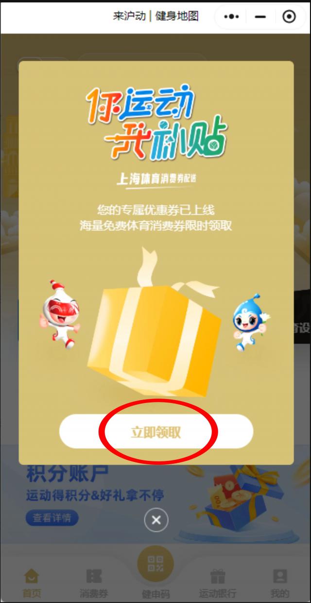 在微信上搜索“来沪动”,点击“来沪动·健身地图”进入优惠券领取界面。