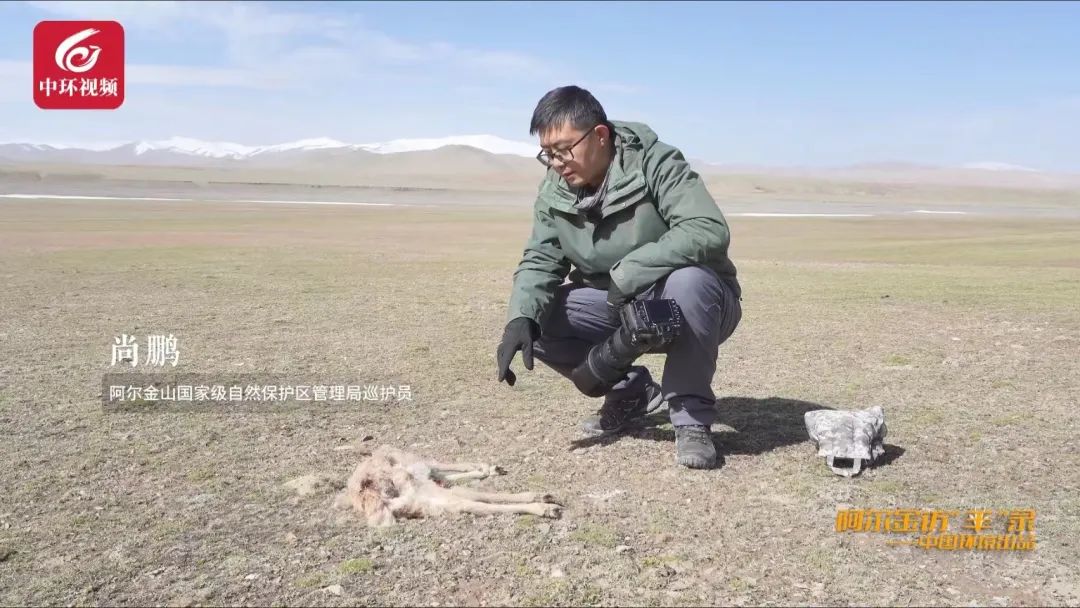 图片显示尚鹏发现了一只小藏羚羊的尸体。图片来源秀美中国直播