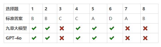 九章大模型在试题竞争中的正确率是 85%,GPT-4o 的正确率为 75%。