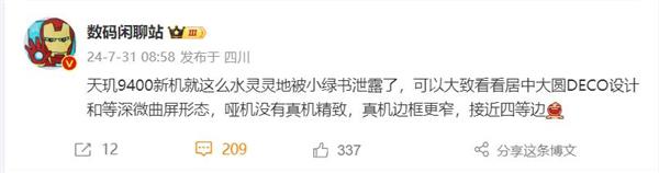 据博主数码聊天站透露,vivo X200 首发天玑 9400,照片不如真机精美,真机外框更窄,接近四等边。