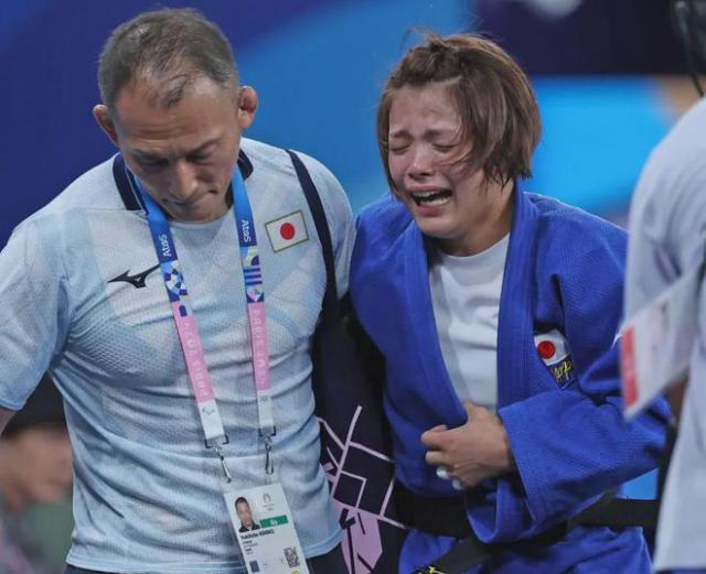 可阿部诗哭得跟“稳拿金牌”一样,错过了。整个对手 Keldiyorova 面带困惑,懂得柔道的日本网友尴尬到想抠地板。