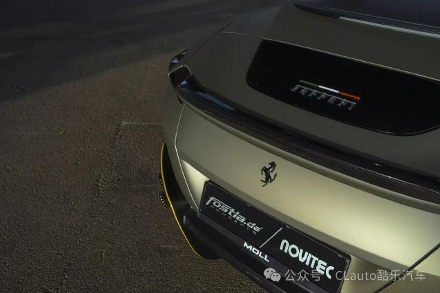 在底盘改装方面,该车采用了 Novitec 运动扭簧,使车身减少。 35 mm,其减震弹簧法拉利已安装可选 Magneto 减震适配。