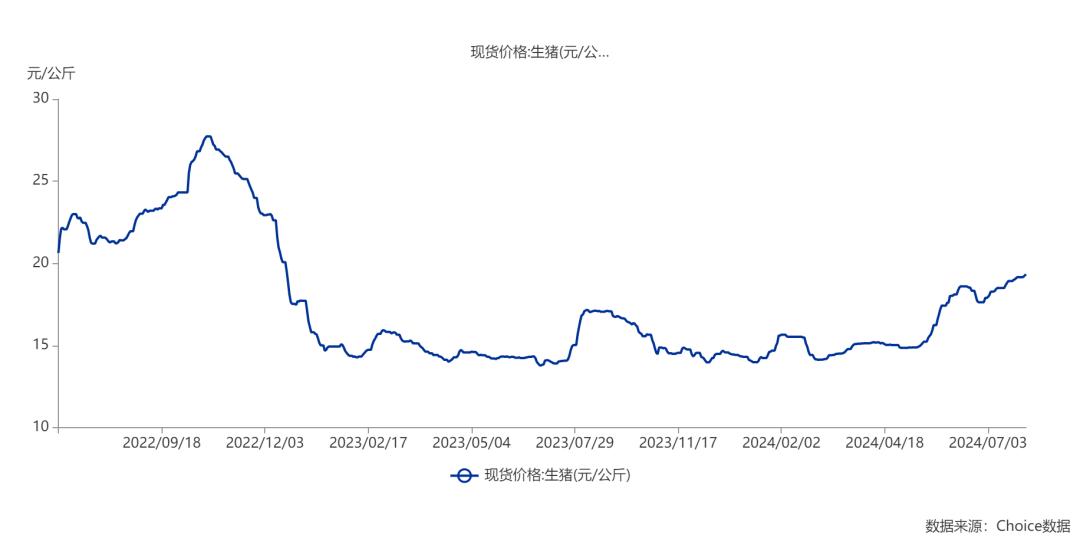 根据Choice的数据,7月30日全国生猪均价为19.25元/日。KG,比29日上涨0.08元/元KG,与上个月同期相比,上升了1.62元/KG。截至目前,浙江、广东、福建等省份已突破20元价格。