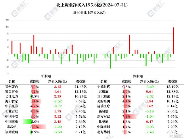 12、北上资金净买入 A 股 195.8 1亿元,加仓中国核电、贵州茅台、中国安全;
