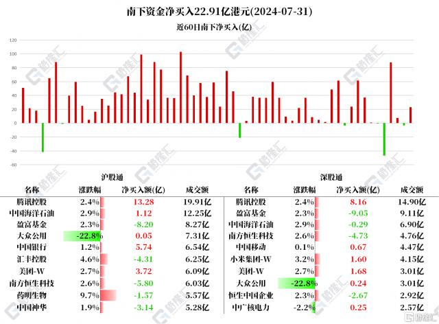 13、腾讯南下资金大肆加仓。 21.44 汇丰控股减持1亿港元;