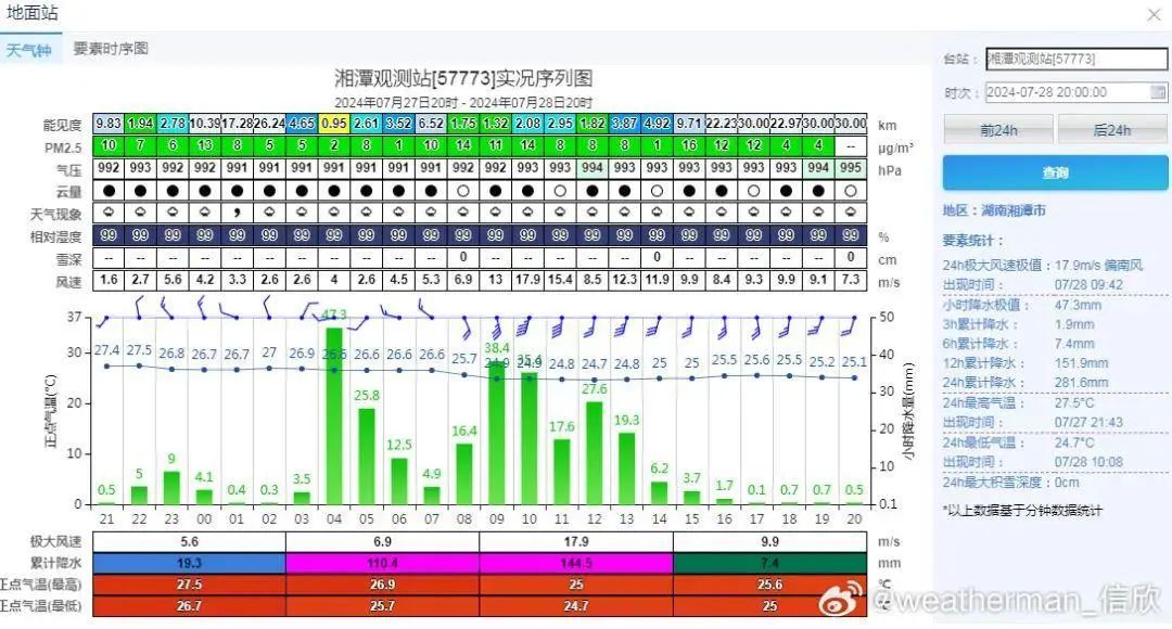 在湖南省湘潭市,有一场破纪录的暴雨。