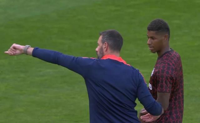 在曼联的美国训练课上,范尼而不是滕哈格用荷兰口音的英语命令。后者戴着白色棒球帽站在后面观察。范尼指挥红魔球员把球传到边上,创造进球的机会,就像吉格斯和贝克汉姆踢球时做的那样。