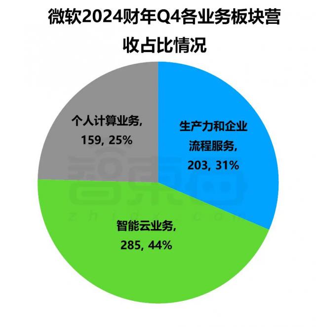 ▲微软 2024 财年 Q4 各业务领域的收入占比情况