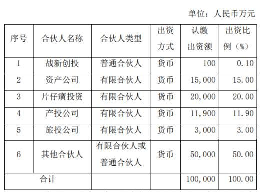 片仔癀与关联方漳州战新风险投资基金管理有限公司(以下简称“战新风险投资”)在产业基金出资份额中、漳州片仔癀资产管理有限公司(以下简称“资产公司”)、漳州产业股权投资有限公司(以下简称“产业投资企业”)、漳州旅游投资集团有限公司(以下简称“旅游投资公司”)的投资比例 50%。