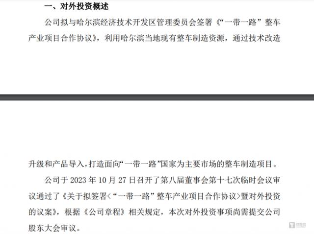 据 2023 年 10 月山子高新与哈尔滨经济开发区签署的《一带一路汽车工业项目合作协议》 8 几个月内,山子高新将完成目前汽车生产基地的设备和基础设施改造。公司后续信披还提到,第一辆量产车应在此期限前完成下线。