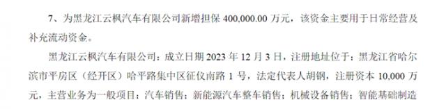2024 年度股东大会数据显示,山子高新今年为云枫汽车增加了新的担保 40 1亿元,用于日常经营和补充营运资金,可见“烧”的钱还是不少的。