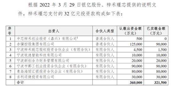 最初,叶邈子子公司梓禾瑾芯参与了山子高新破产重组,原定投资者作为重组投资者投资。 24 亿元,但是后续的重组款一路走来 2020 年末拖至 2022 年 9 月份,多次违约,2022 2008年,梓禾瑾芯找吉利系、海尔系等等。 8 个人投资者共同出资“凑够”,“赤邈系”的出资额为 11.95 亿元。