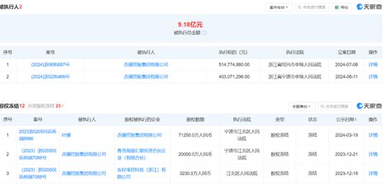 在大股东方面,与其背后的红宝控股集团相比,叶宝远不如《致股东信》中的岁月。在过去的两个月里,叶宝多次受到限制,红宝控股的执行总额高达 9.18 亿元。