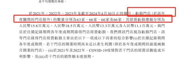 2021 年 -2023 年及截至 2024 年 4 月 30 日止四个月,亏损店面总数(除了今年关闭的店面)分别为 63 家、66 家、66 家及 66 家庭,其经营亏损总额分别为 1580 万元、1850 万元、1330 万元及 1110 万元。