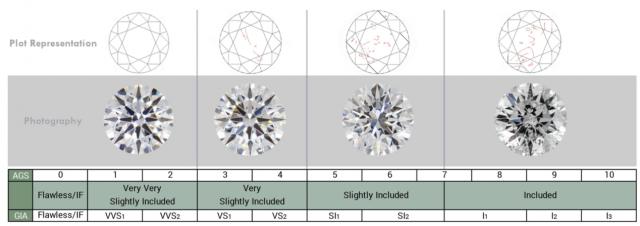 钻石净度分级,越接近 IF 端子内部越干净 图片来源:AGS