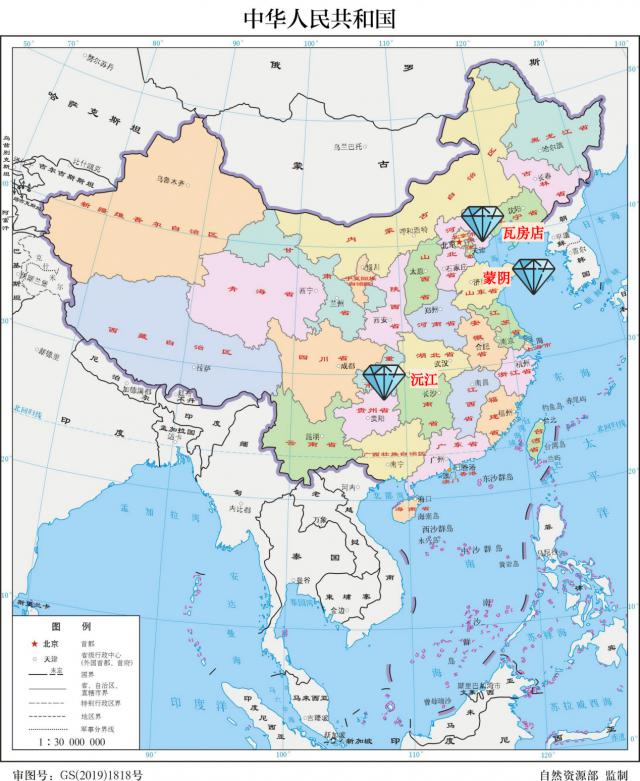 中国裸钻的主要产地分布 中国地图来源:自然资源部网站