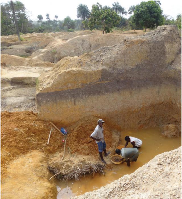 采矿冲积几内亚矿场的裸钻,矿工清理砾石 图片来源:美国地质局