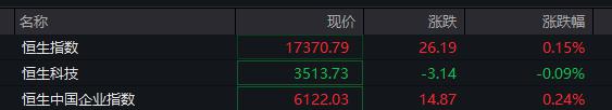 三大港股指数小幅低开后上涨,恒生指数上涨。 恒生科技指数下跌0.1% 恒生国有企业指数0.08%上涨 0.24%。东方选择跌幅超过 3%,哔哩哔哩跌超 2%。恒生银行接近下跌 3% 蓝筹股领跌,JD.COM集团接近下跌 2%;