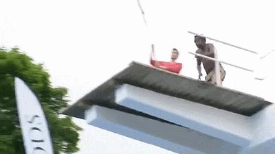 所有参赛者从10米跳台跳下,尽量张开四肢,直到靠近水面才蜷缩起来。