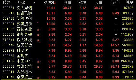 最近热门的股票,如腾达科技、航天晨光、北巴传媒等,今天继续封板。