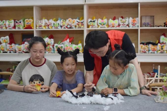 现场还邀请了侯氏手工面料编织第五代传承人闫飞雪先生,指导孩子们与志愿者一起制作面料娃娃。孩子们盯着老师的手,生怕错过任何细节。“哥哥,我也想成为一只小老虎。”在动手阶段,孩子们渴望尝试,切割泥浆,穿针引线。不一会儿,一个可爱的娃娃诞生在巧手下。孩子们放不下,脸上洋溢着幸福的笑容。