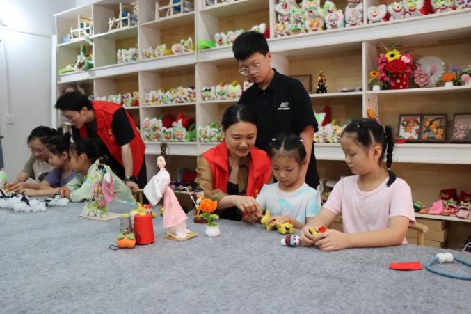 七月三十日,镇平县“多彩假期” 文明实践活动“艺”路“童”行”走进镇平县侯氏手工布艺编织馆,文明实践志愿者带领孩子们学习制作省级“非物质遗产”侯氏布艺,一起感受非物质遗产的魅力。
