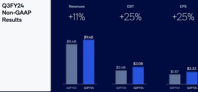 营业收入:二季度非 GAAP 调整规格后的收入 93.91 亿美元,同比增长 分析师预期的11% 92.1 一季度亿美元同比增长。 1%。