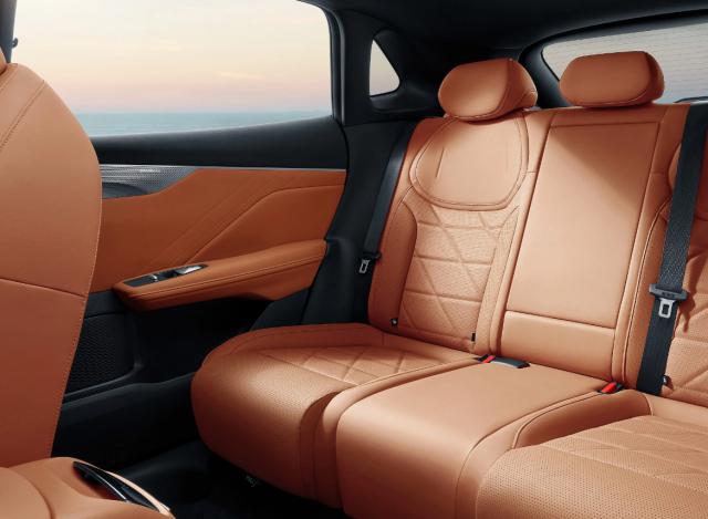 深蓝 S05 车里为 5 座椅布局,前排座椅看起来有一定的包裹感。从图中也可以看出,深蓝色 S05 有望配置双无线手机充电面板、后空调风口、全景天窗等配置。